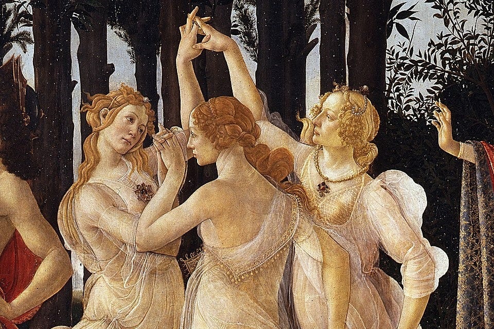 Our selection today comes near the beginning of Orchestra, when Antinous will begin defending the dance by asking Penelope to consider the motions of the heavenly bodies. He’ll go on from there, after our selection, to talk about the true Love — the true Cupid, as an allegory of the Love that binds men and women together in marriage and in society. So it isn’t just astronomy, not by a long shot. Notice, though, that Davies here says that there are some sleepy-heads who believe that the world is made up of atoms, “motes,” teeny-tiny particles that can’t be divided, which is what the word “atom” means, so he’s well aware of what we’d call materialism, but he, or rather Antinous who is speaking, turns that philosophy back on itself, because someone, GOD, had to set those motes a-dancing in their order. The world is a cosmos, a beautifully ordered whole, not a chaos. Because it’s beautiful and orderly, the beauty up above is reflected and made manifest in beauty down below. How did the Amphion raise the walls of Thebes? By playing on his lyre and singing. Why should the boy and girl dance? Because Love rules the world. As soon as there was time, there was motion in order: there was dancing. So what are we waiting for?