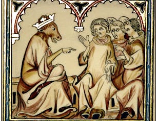 Once upon a time, in a faraway land called France, there was a horse named Fauvel, and he was a horse who was going places. Live in a stable? Not Fauvel! He got himself set up in the royal court. And “all around Fauvel, such a big crowd gathered, people from every nation and all stations of life — why, it was a marvelous thing to see! And every single one of them wanted nothing more than to curry Fauvel.” Kings and counts, knights of high degree and low, viscounts, stewards, middle-class merchants from the towns, even peasants from the countryside, they all wanted to give Fauvel a good rub-down: