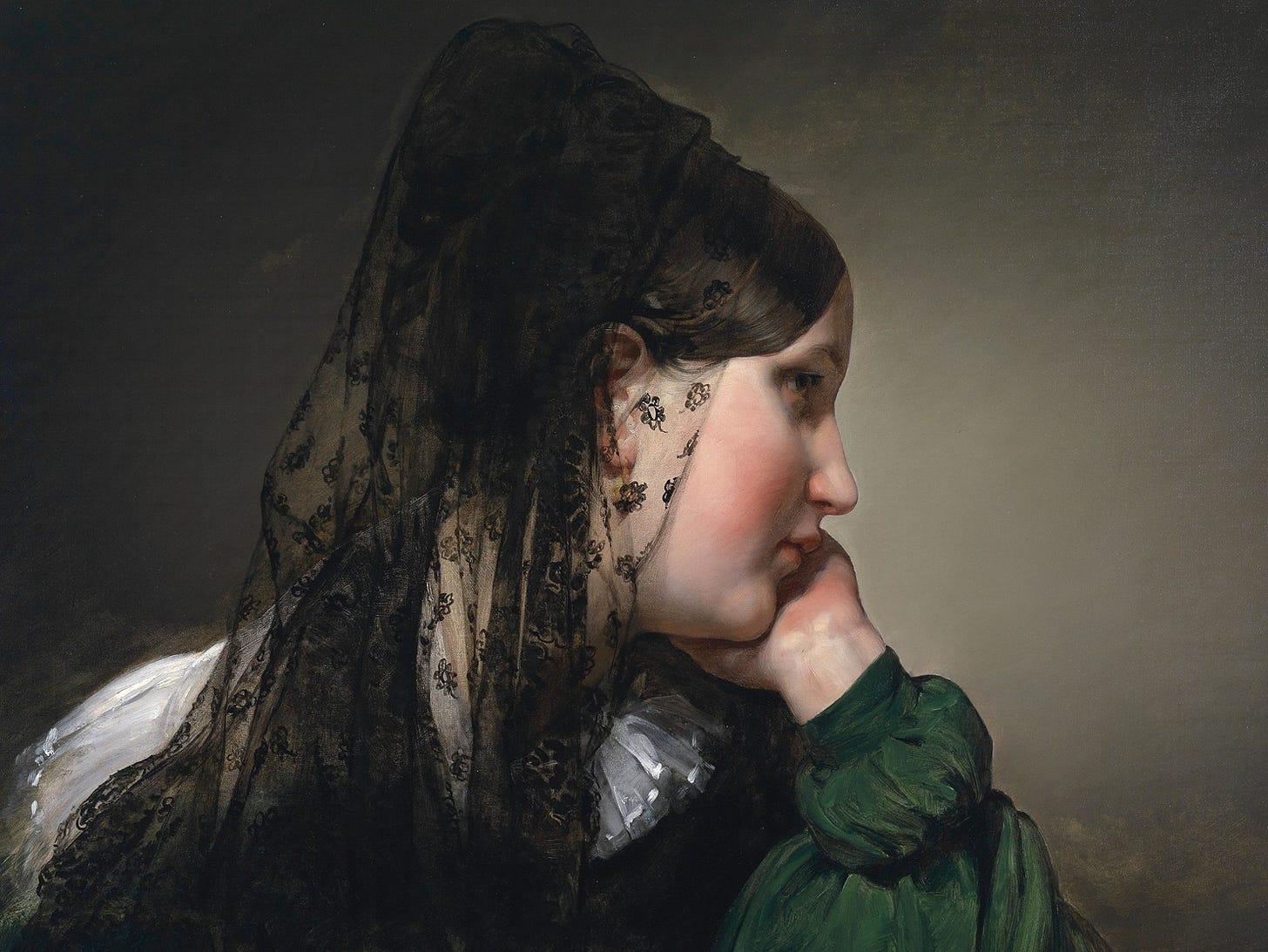 In this poem, Byron dwells upon the sweet loveliness of a young woman, Mrs. Anne Wilmot, when at a large gathering he saw her dressed in mourning. Anne was kind and gentle, and Byron was so struck by her, and also by her beauty in the midst of sorrow, that he wrote our Poem of the Week the next day and gave it to her. Now, the night he compares her to isn’t supposed to suggest anything sinister; there’s nothing of the femme fatale. Why, many feminine names refer to the quiet peacefulness of the night: Leila, for instance, from languages like Hebrew and Arabic. It’s not any old night that Byron has in mind, and certainly not a night of storms. It’s the night “of cloudless climes and starry skies,” such a night as you might see in the Mediterranean lands, a night sky powdered with stars, glittering over the sea. Nor is he thinking only of the picturesque. In the beauty of this woman — and remember, she was in mourning — the beauty of night and day meet and kiss. If there were one shade more, or one ray of light the less, the “nameless grace” we see in her would be impaired. Why is it a nameless grace? That’s easy to answer, and not easy to describe. The grace of the young Mrs. Wilmot, calmly cheerful in the midst of sorrow, a woman of raven tresses and light in her eyes and her cheeks, has no name. We can but try to capture it in words touched by the music of poetry.