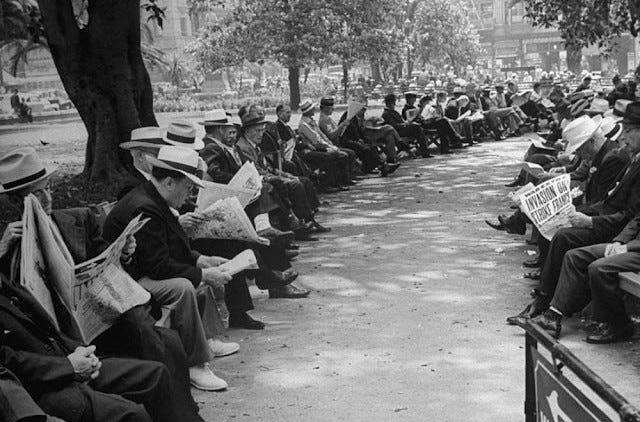 So when Virginia Woolf heard the news that T. S. Eliot had accepted the only real news that mankind has ever heard, she blanched. There’s something ambiguous about this notion that newspapers bring the news. If we mean that they tell us what happened yesterday, sure, they do that. If we mean that what happened yesterday is something quite different from what happened the day before yesterday, or a hundred or a thousand years ago, we have to hedge. It may be Saddam Hussein today, Louis XVI yesterday, and Charles I the day before. It may be Watts today, Haymarket yesterday, and George Gordon in London the day before, whose sympathizers looted and burned, set open Newgate Prison, and sacked the Bank of England. You can read about it in Dickens’ novel, Barnaby Rudge. As the wry and sour Preacher puts it, “What has been is what will be, and what has been done is what will be done; and there is nothing new under the sun.”